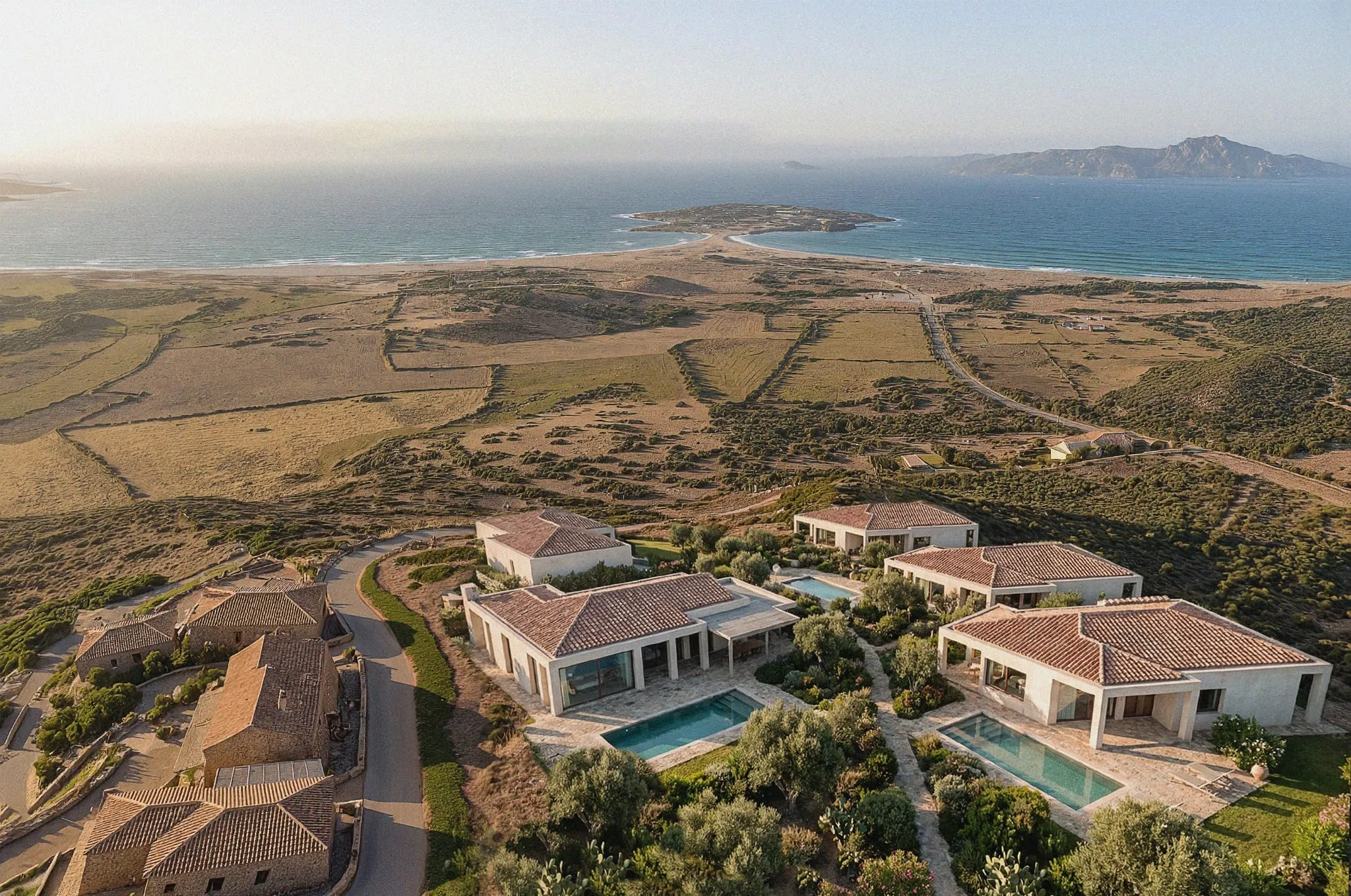Un masterplan residenziale sulla costa nord-orientale della Sardegna, in uno dei contesti paesaggistici più ricercati del Mediterraneo. Architettura sobria, materiali locali, proporzioni domestiche — nessuna ostentazione.